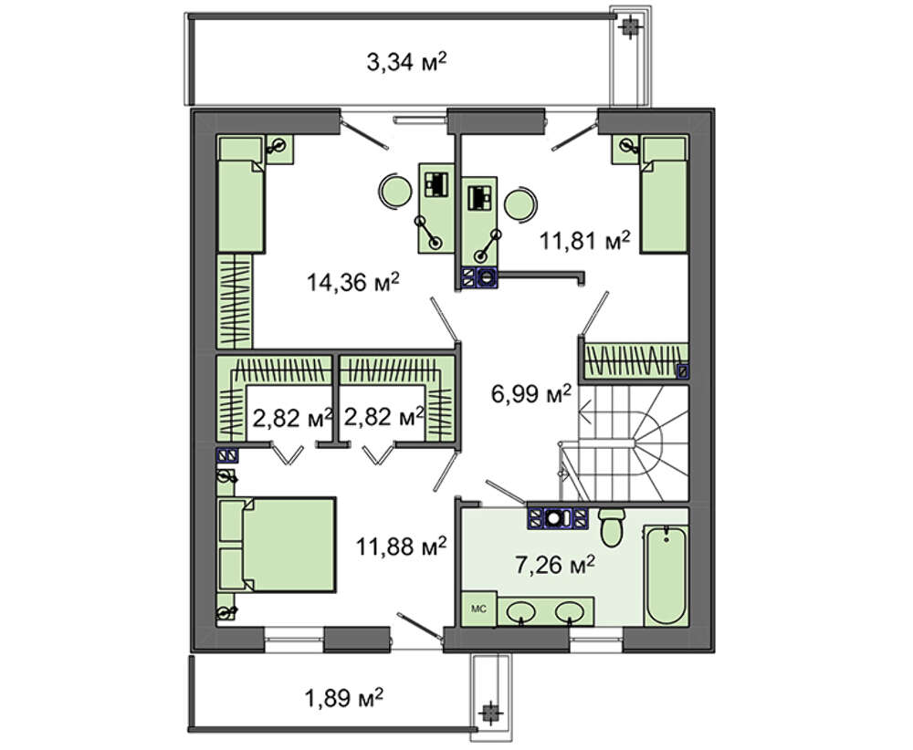 • 4M169 Компактный двухэтажный коттедж 8 на 11