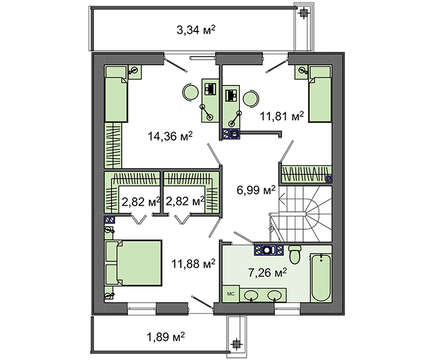Компактный двухэтажный коттедж 8 на 11 4M169
