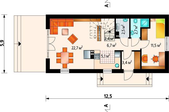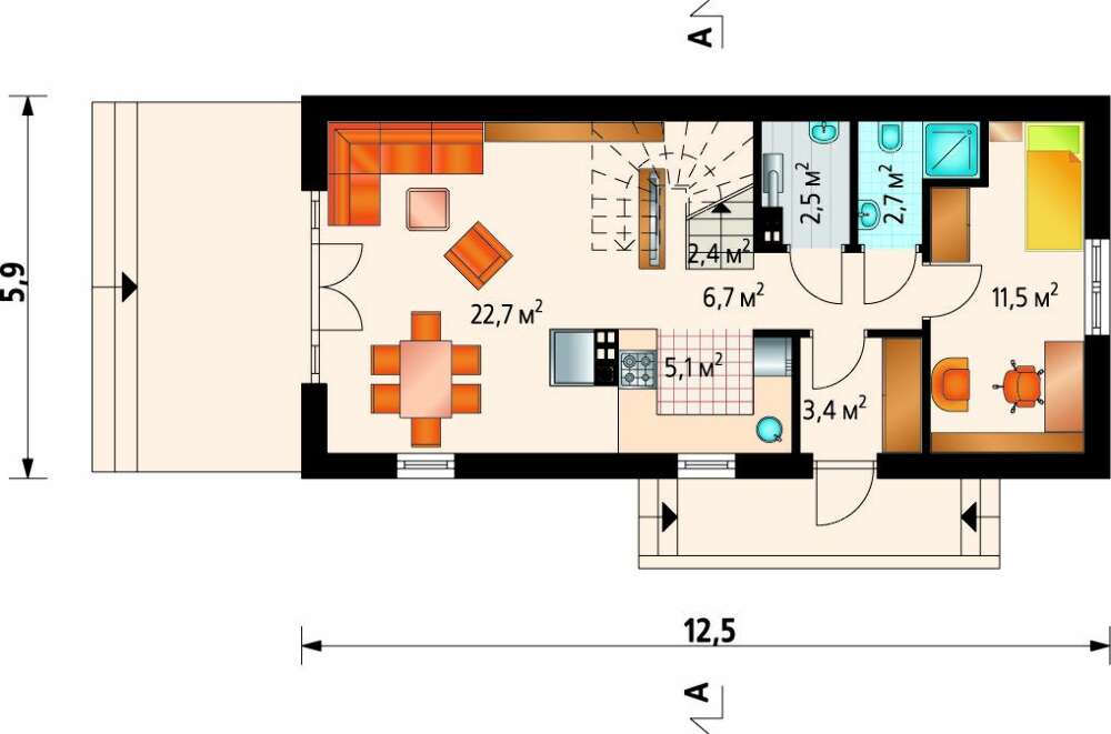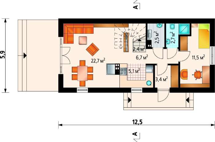 Коттедж для узкого участка 12 на 6