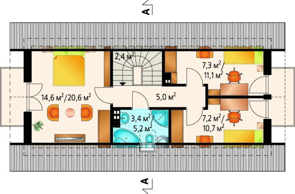 Коттедж для узкого участка 12 на 6 4M3383