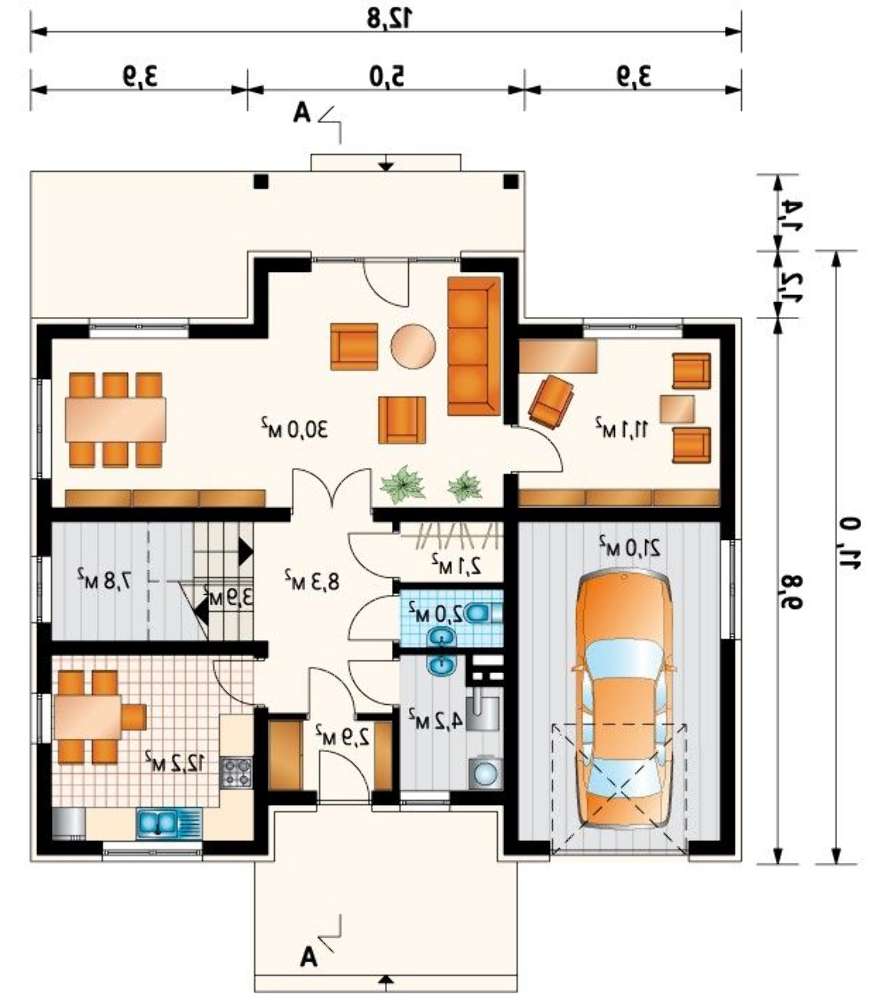 проект в зеркальном отображении позволит органично вписать дом в окружающий ландшафт.
