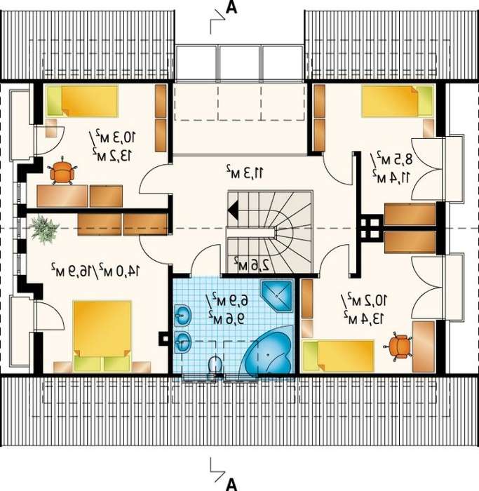 Пространство второго этажа рассчитаны на размещение необходимой для отдыха и личных занятий мебели. Все комнаты имеют выходы на индивидуальные балконы, что делает их более привлекательными для романтиков и мечтателей.