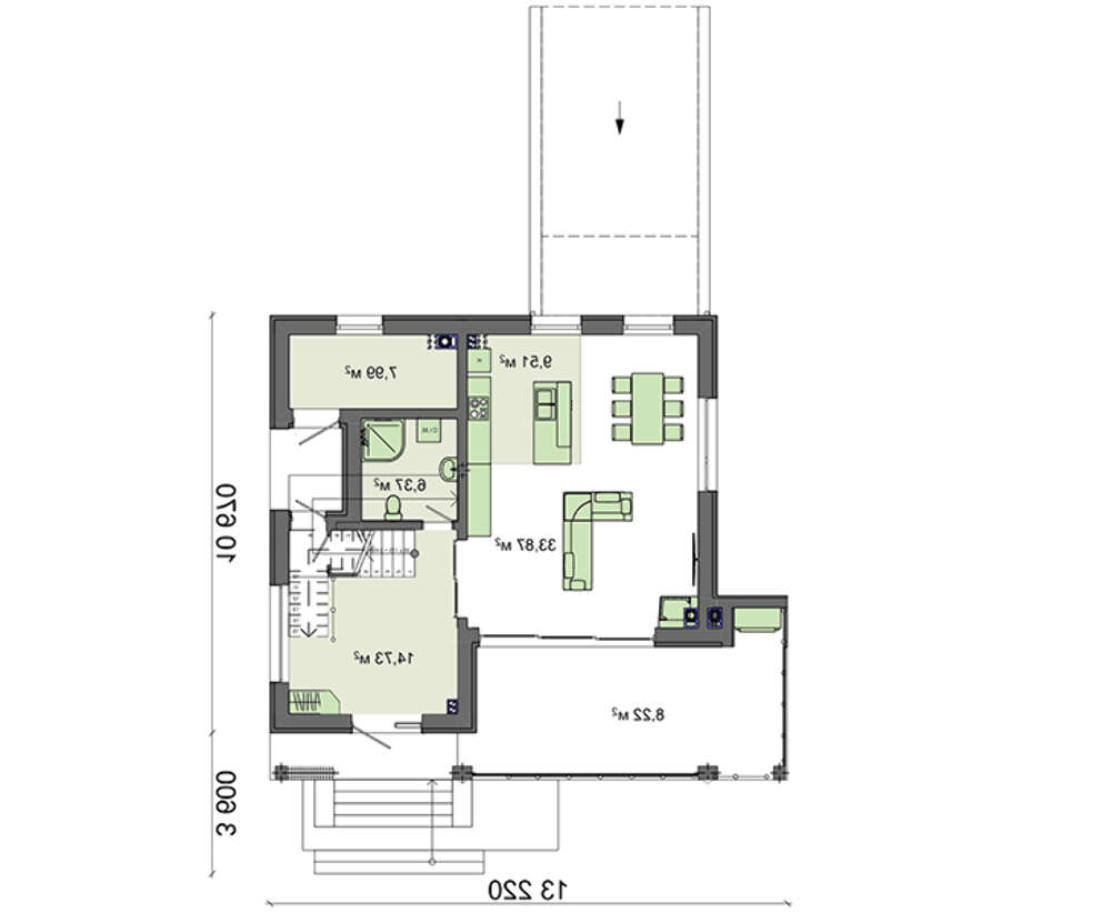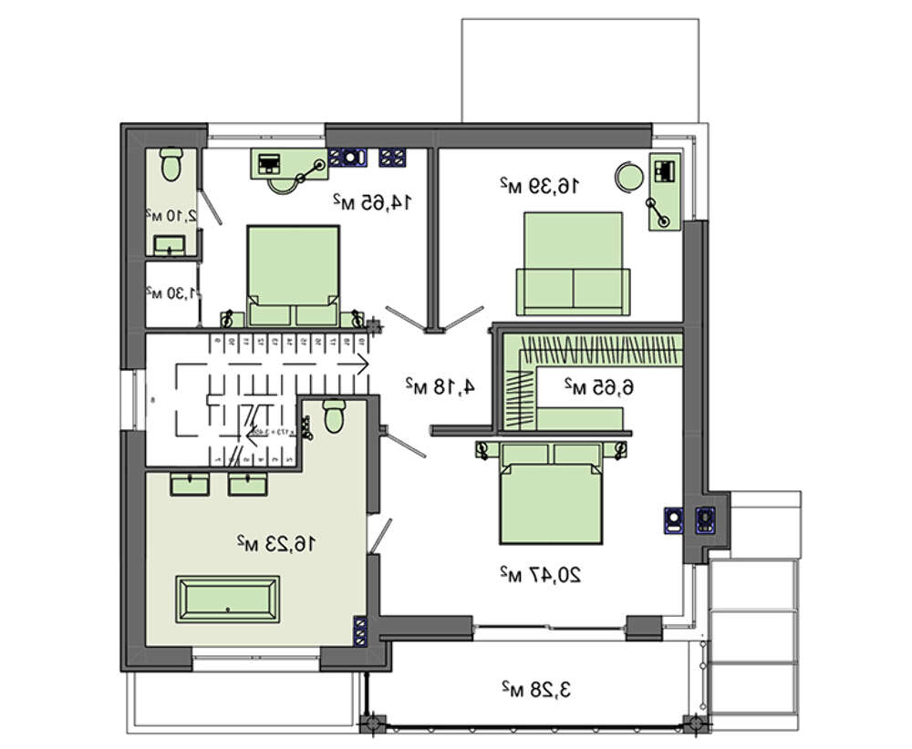 проект в зеркальном отображении позволит органично вписать дом в окружающий ландшафт.