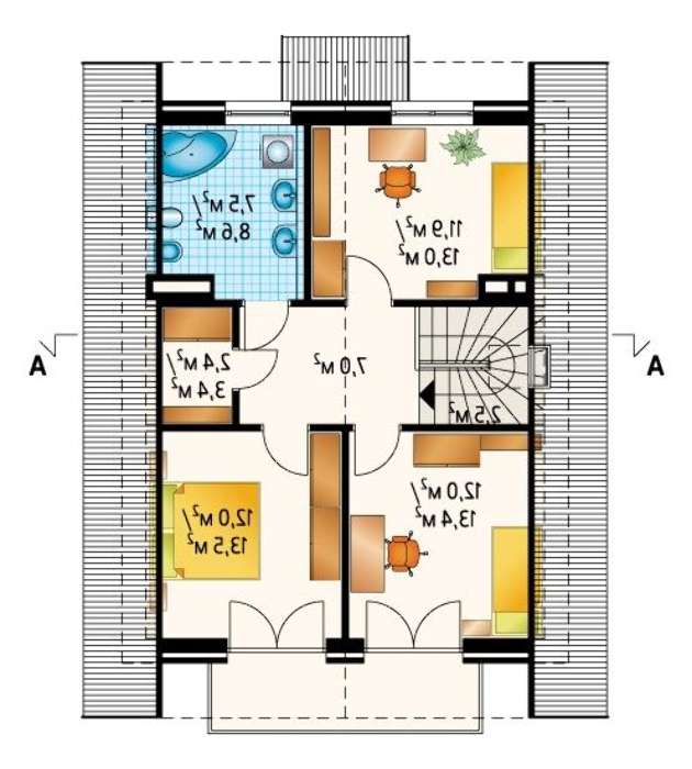 проект в зеркальном отображении позволит органично вписать дом в окружающий ландшафт.