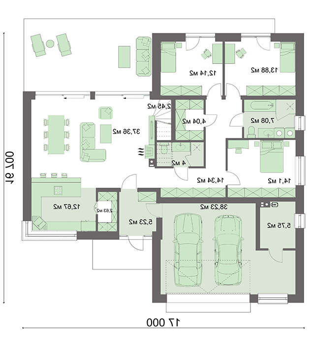 • технический, состоящий из гаража на два автомобиля, прихожей и подсобного помещения топочной, которую можно переоборудовать в домашнюю мастерскую по интересам;