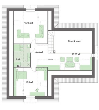 Второй этаж включает апартаменты хозяина, ванную комнату и большое помещение для отдыха.