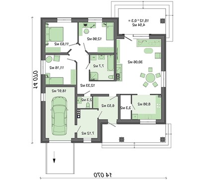 проект в зеркальном отображении позволит органично вписать дом в окружающий ландшафт.