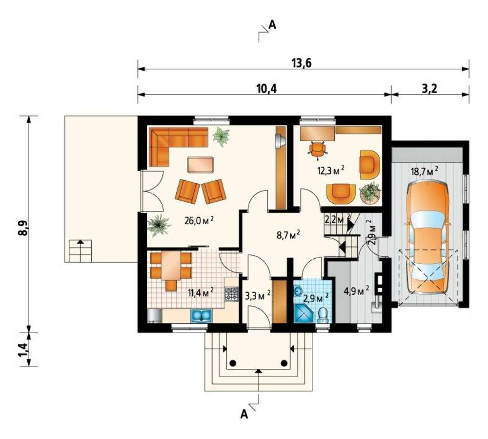 Проект содержит три раздела – АрхитектурныйКонструктивный и Инженерный: водоснабжение, отопление, вентиляция, канализация, электроснабжение (приобретается за дополнительную плату) + Пояснительная записка.