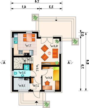 • 4M3617 Мансардный дом с габаритами 8 на 8