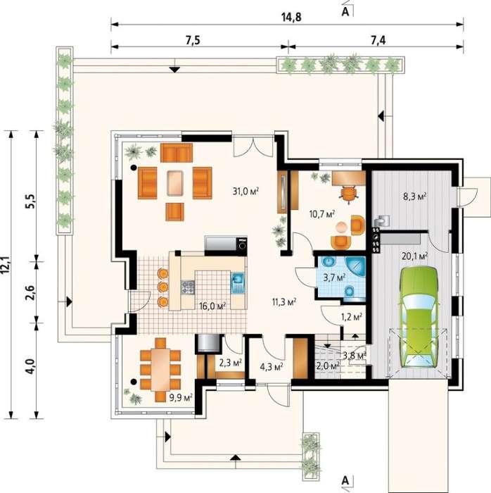 • 4M3271 Мансардный коттедж с большим угловым панорамным окном