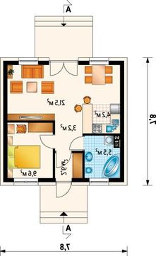 Небольшие размеры не мешают во внутренних покоях разместить все необходимое. Для спальни отделено специальное пространство, позволяющее полноценно отдохнуть и насладиться загородной тишиной. Совмещенный санузел разрешает не только с комфортом проживать на дачной территории, но и иметь под крышей дома все требуемые удобства.
