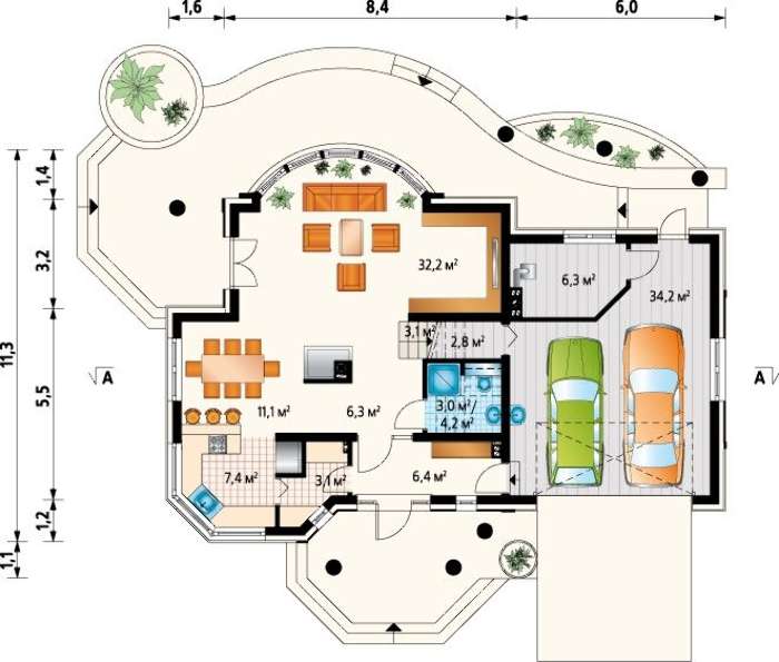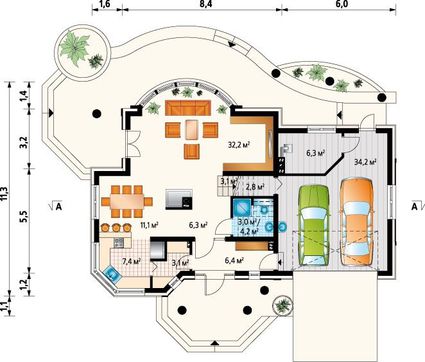 • 4M3341 Небольшая мансардная усадьба с пристроенным гаражом