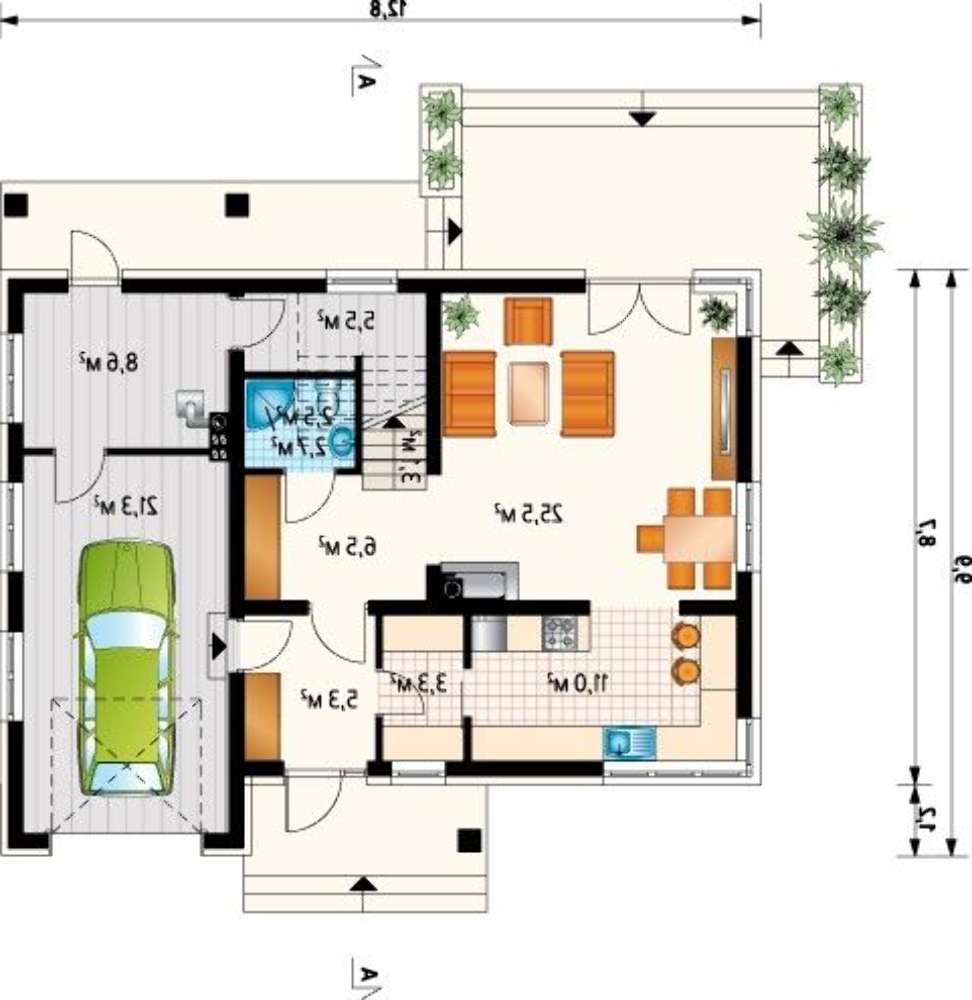 проект в зеркальном отображении позволит органично вписать дом в окружающий ландшафт.