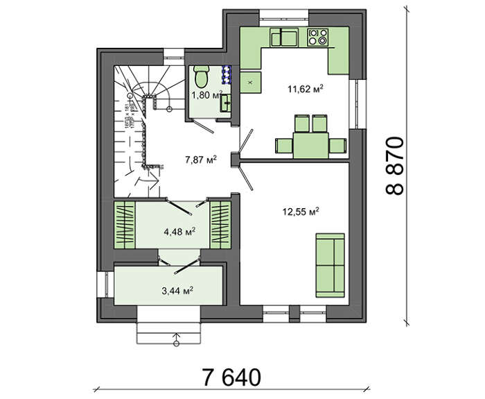 Великолепный коттедж в два этажа выполнен в стиле современного конструктивизма, что понравится многим будущим владельцам. Компактные размеры 7×8 позволят поместить дом на небольшом дачном участке, в условиях тесной застройки мегаполиса или в загородном поселке. Общая площадь 78 кв. м. даст возможность обустроить все необходимые помещения для комфортного проживания среднестатистической семьи.