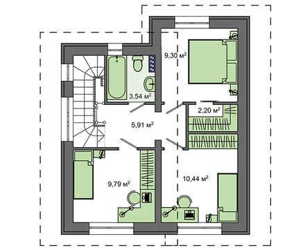 Проект содержит три раздела – Архитектурный, Конструктивный и Инженерный: водоснабжение, отопление, вентиляция, канализация, электроснабжение (приобретается за дополнительную плату) + Пояснительная записка.