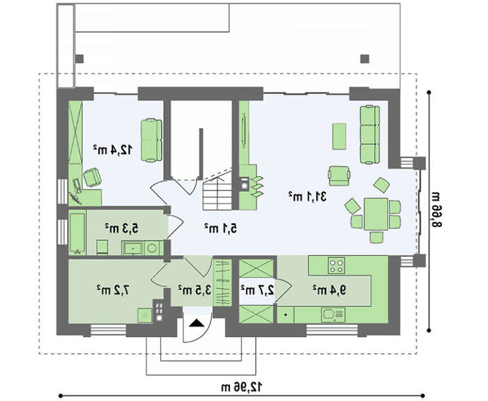 проект в зеркальном отображении позволит органично вписать дом в окружающий ландшафт.