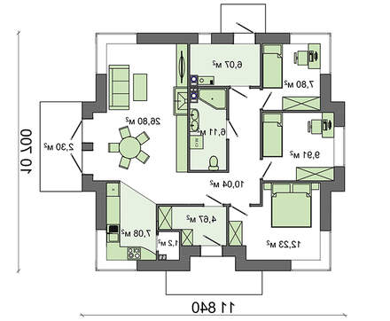 Небольшой одноэтажный коттедж с тремя спальнями 4M7131