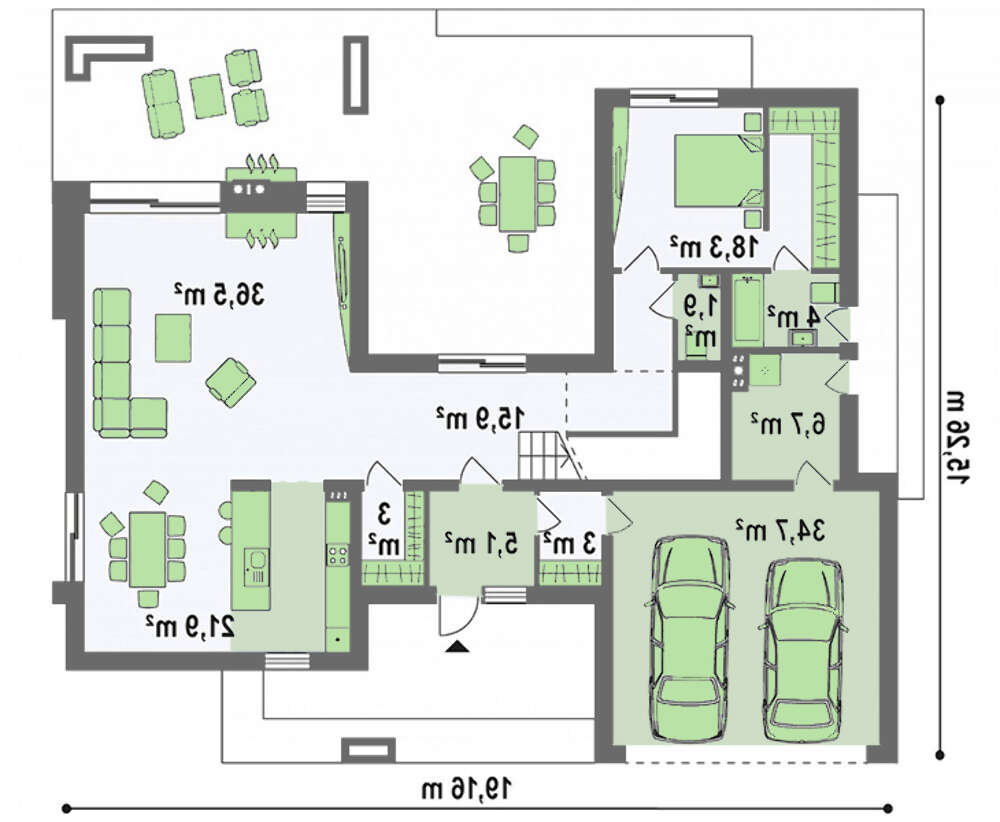 проект в зеркальном отображении позволит органично вписать дом в окружающий ландшафт.