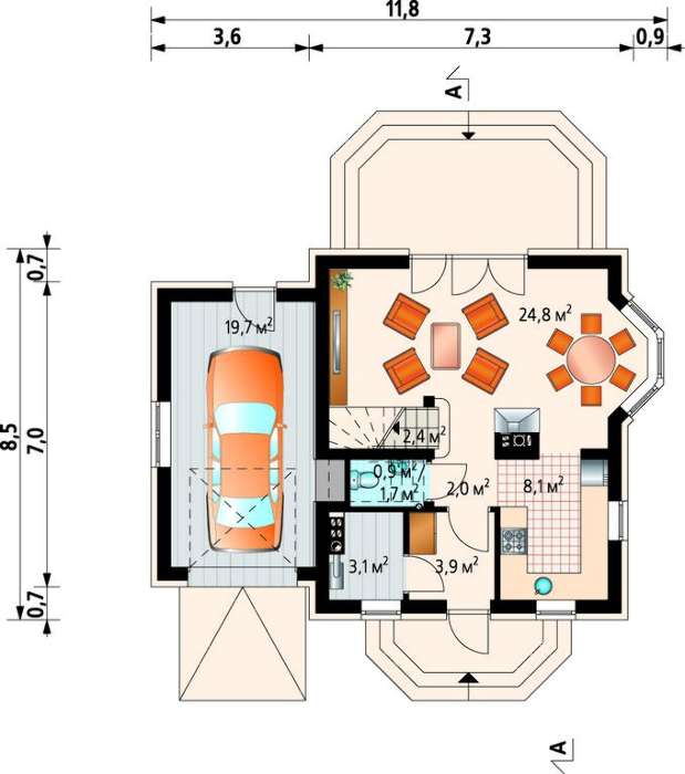 • 4M3547e Небольшой загородный дом с угловым эркером