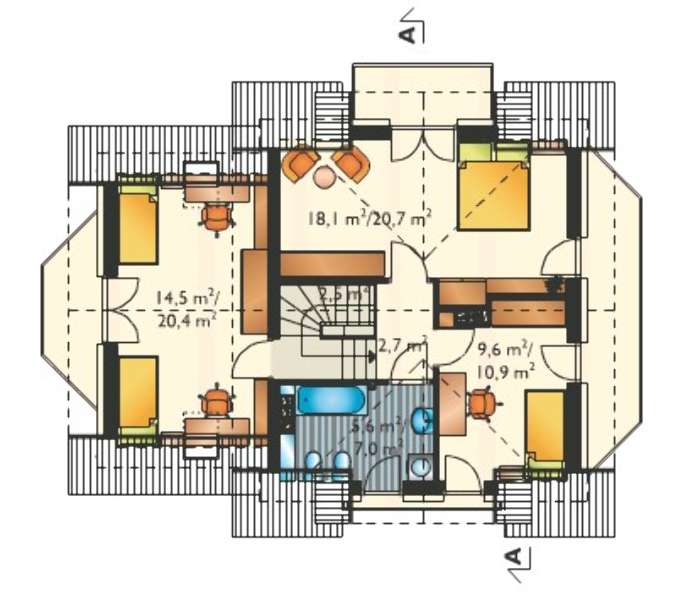 Небольшие размеры строения не помешают каждому жильцу найти уютную комнату на втором этаже, ведь здесь имеется целых три спальни. Обособленные и максимально раздвинутые, они позволяют человеку наслаждаться одиночеством, мечтать на свежем воздухе балкона и радоваться уюту и комфорту, созданному строением.