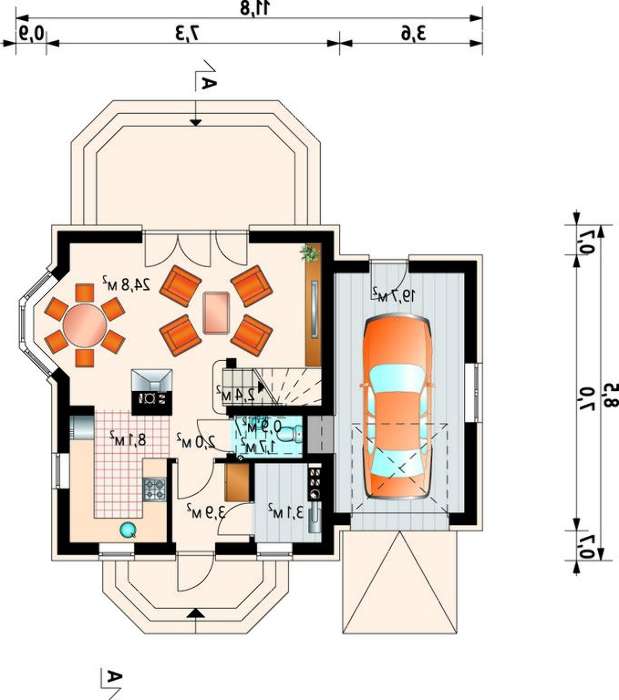проект в зеркальном отображении позволит органично вписать дом в окружающий ландшафт.