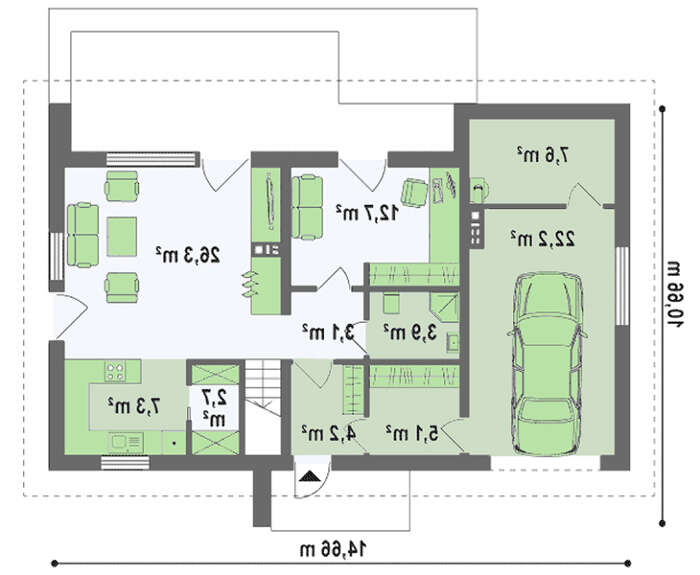 Минимальный размер участка(длина):22.66 м