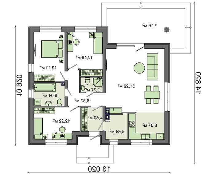 • 4M314v Одноэтажный дом по типу 4M314 с увеличенной гостиной