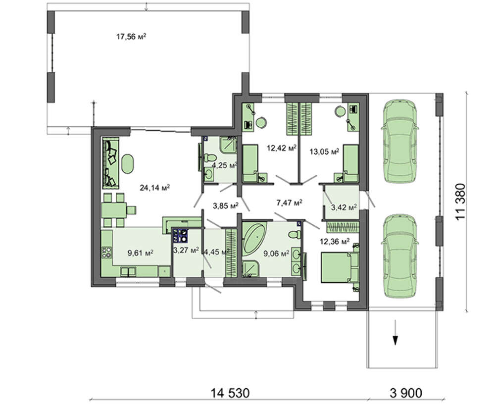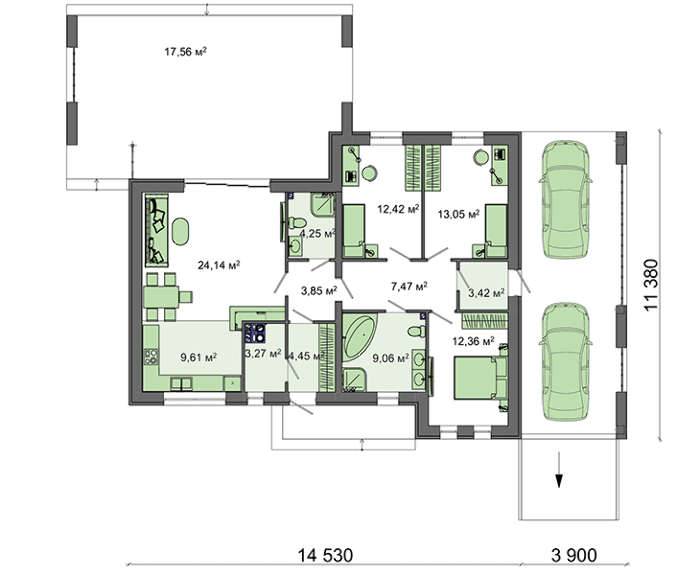 • 4M135 Одноэтажный дом с плоской крышей для узкого участка