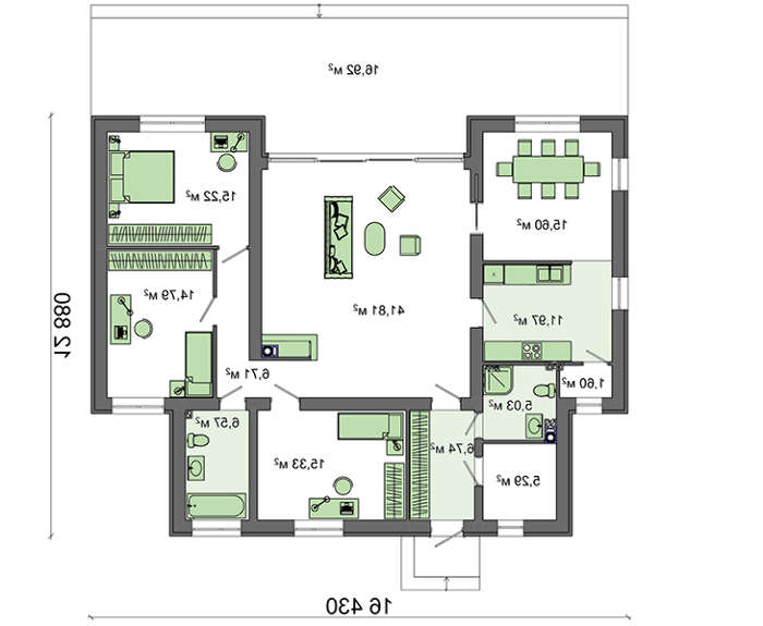 проект в зеркальном отображении позволит органично вписать дом в окружающий ландшафт.