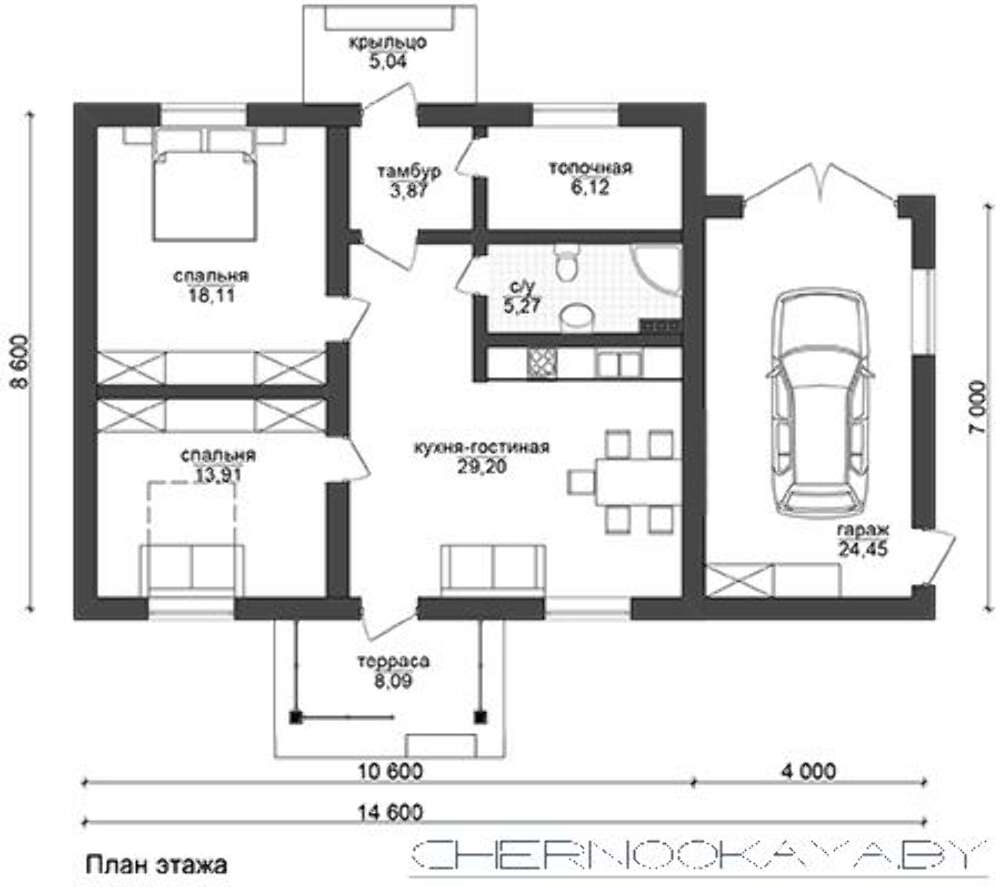 • 4M2310a Одноэтажный коттедж с двумя спальнями