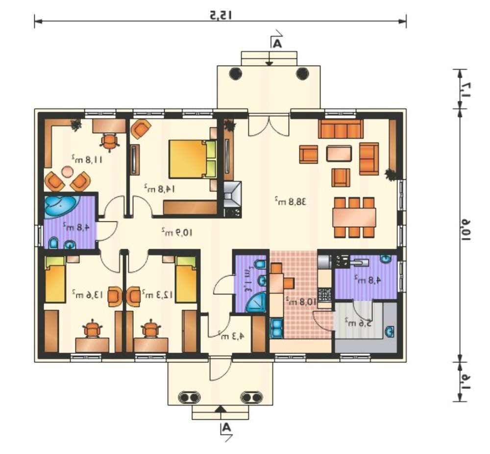 • 4M3484c Одноэтажный коттедж с колоннами на крыльце