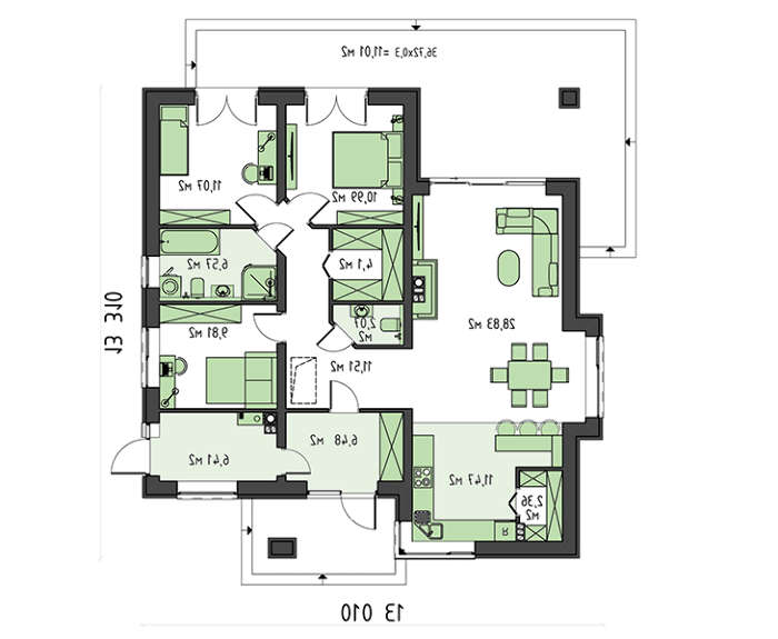проект в зеркальном отображении позволит органично вписать дом в окружающий ландшафт.