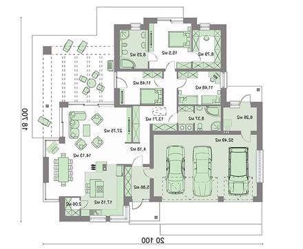 Одноэтажный жилой дом с колоннами и гаражом на три автомобиля 4M387