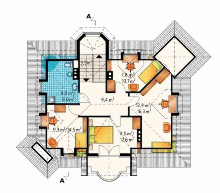 Оригинальный загородный коттедж с крышей в форме башен 4M3220