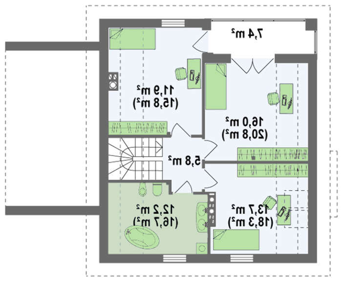 План белоснежного коттеджа в два этажа на 184 кв. м с деревянным декором 4M7140