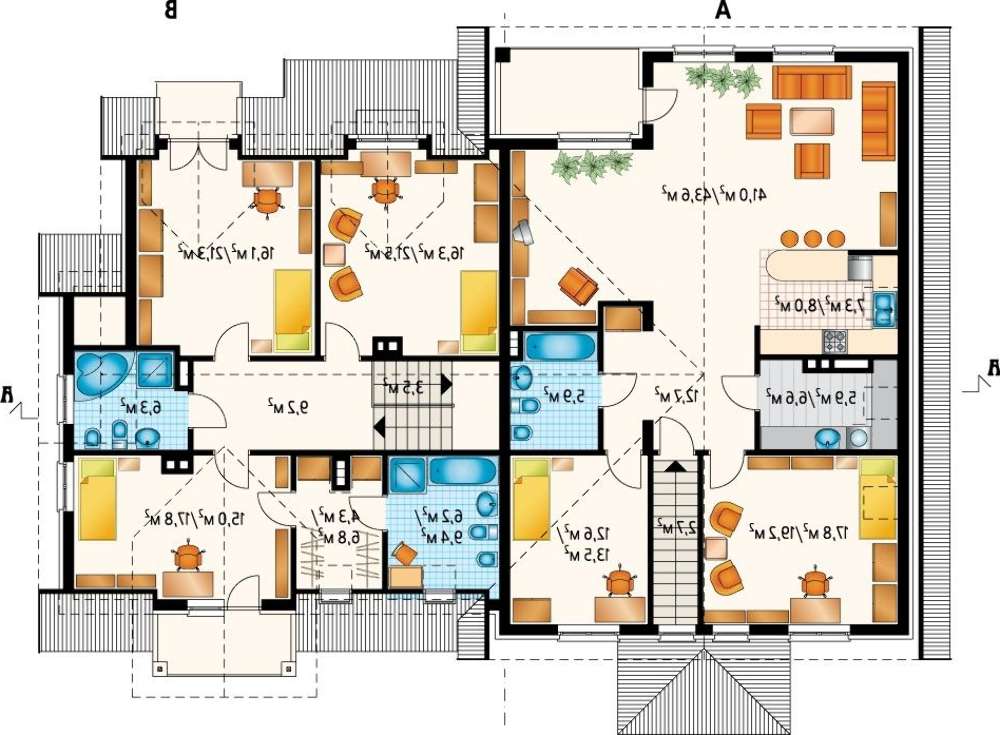 проект в зеркальном отображении позволит органично вписать дом в окружающий ландшафт.