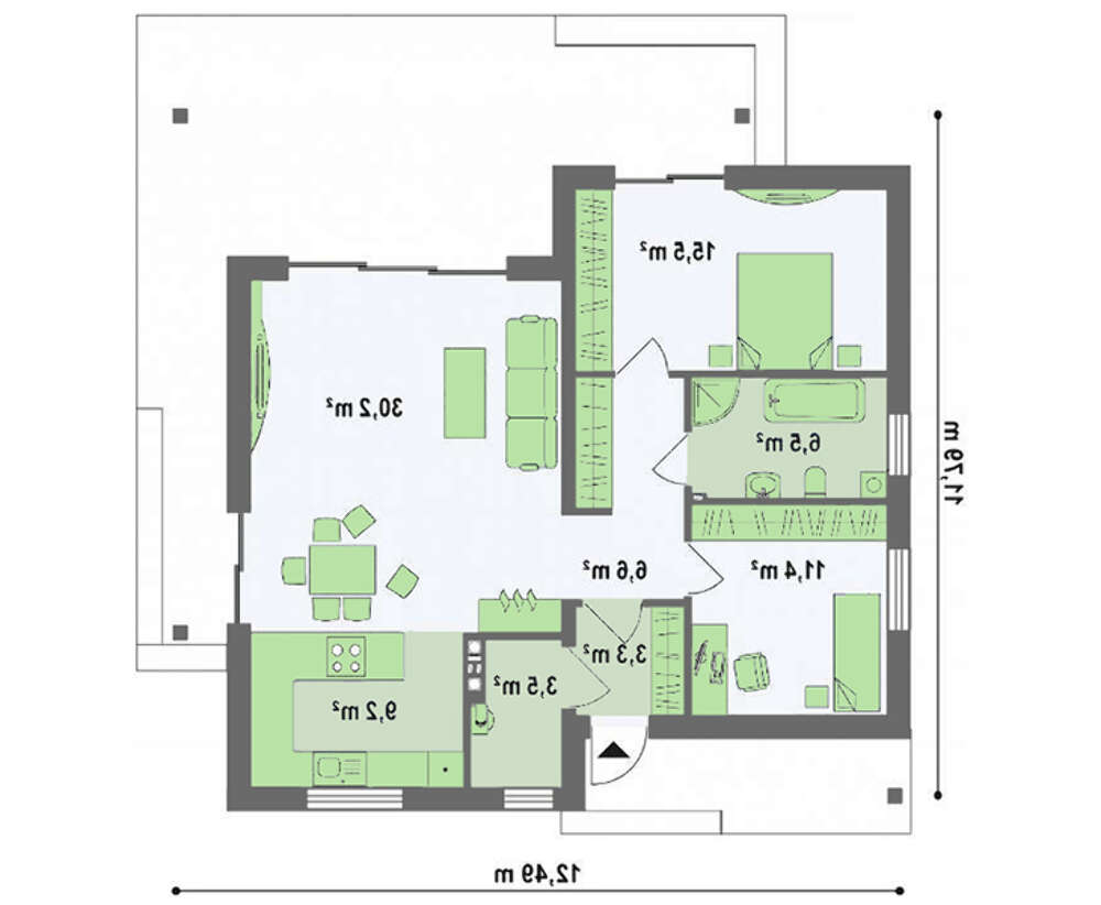 проект в зеркальном отображении позволит органично вписать дом в окружающий ландшафт.