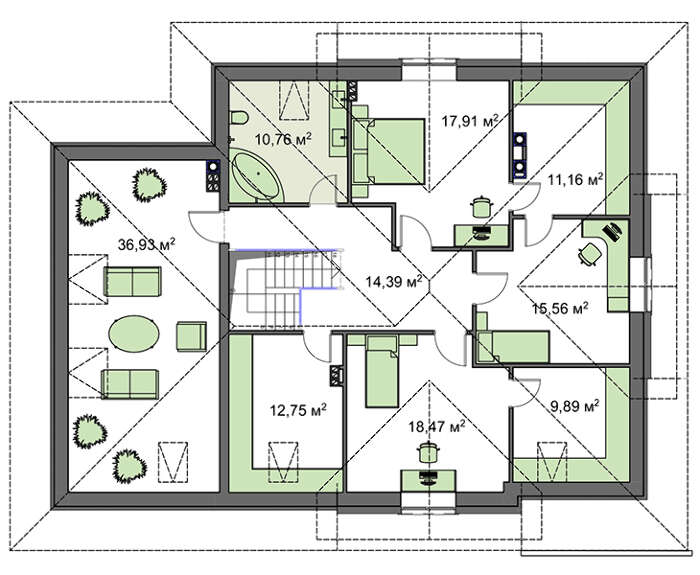 проект в зеркальном отображении позволит органично вписать дом в окружающий ландшафт.