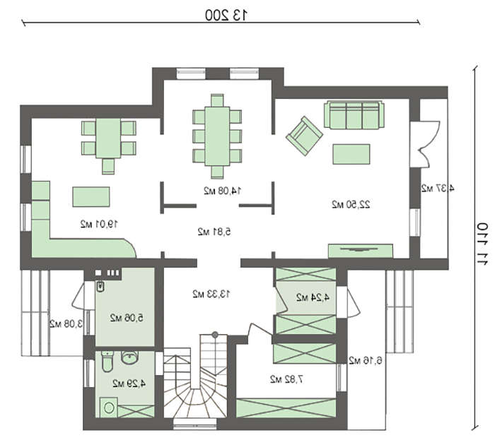 проект в зеркальном отображении позволит органично вписать дом в окружающий ландшафт.