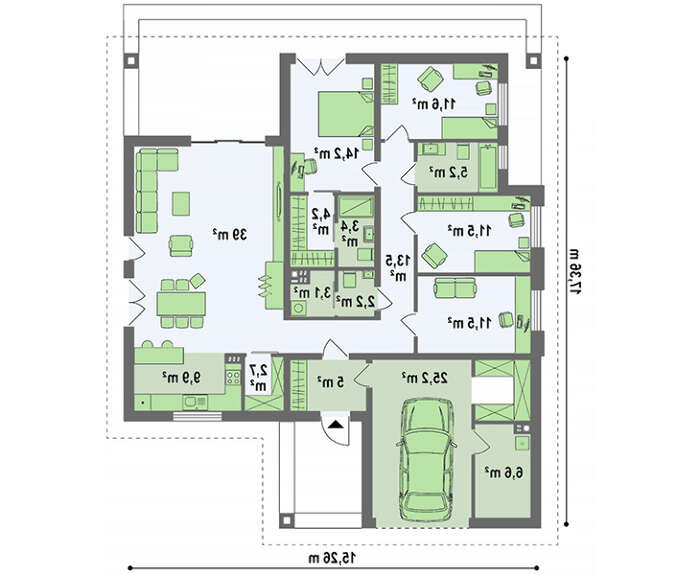 проект в зеркальном отображении позволит органично вписать дом в окружающий ландшафт.