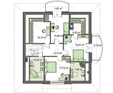 • 4M1472 План стильного дома в три этажа площадью 316 кв. м с полукруглыми балконами