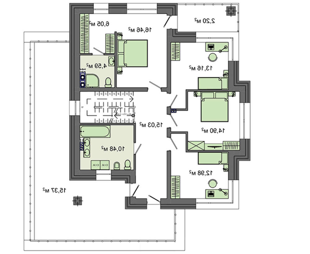 проект в зеркальном отображении позволит органично вписать дом в окружающий ландшафт.