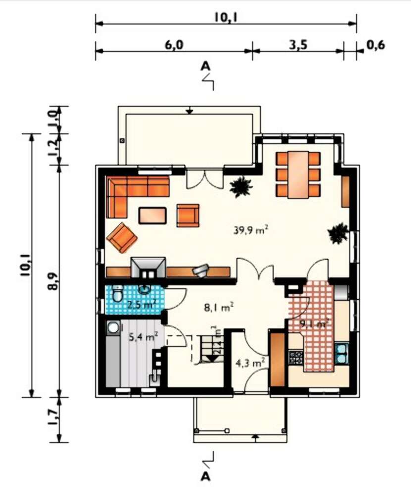 План стильного жилого дома с просторной гостиной
