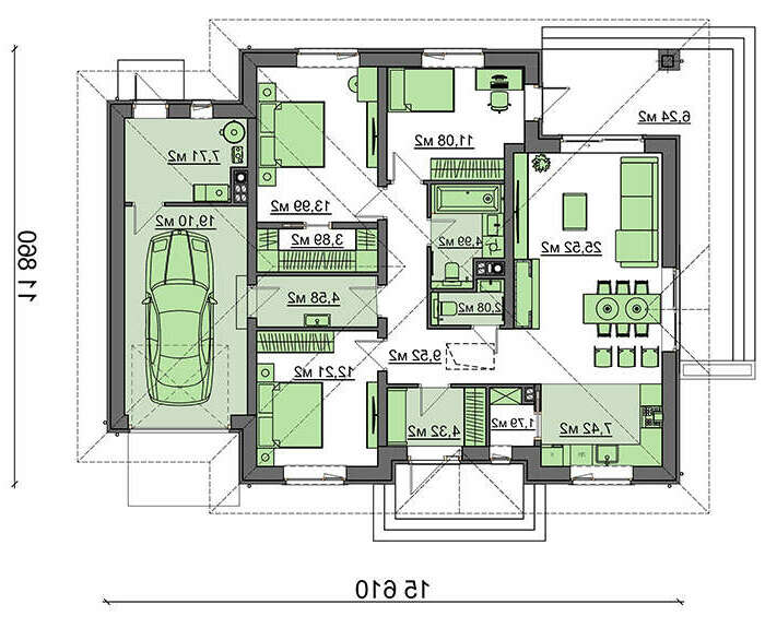 План уютного жилого одноэтажного дома с гаражом 4M599