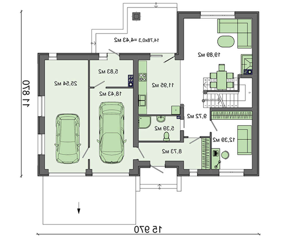 • 4M575 Планировка двухэтажного коттеджа с большим встроенным гаражом