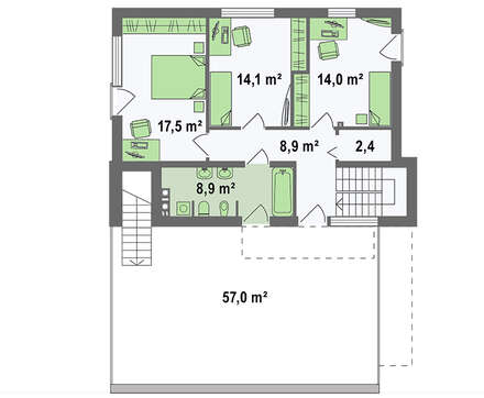 Проект содержит три раздела – Архитектурный, Конструктивный и Инженерный: водоснабжение, отопление, вентиляция, канализация, электроснабжение (приобретается за дополнительную плату) + Пояснительная записка.