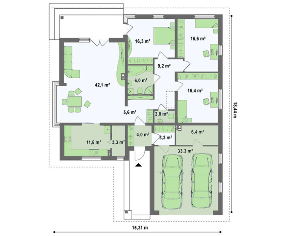 • 4M7012 Планировка одноэтажного дома площадью 175 кв.м.