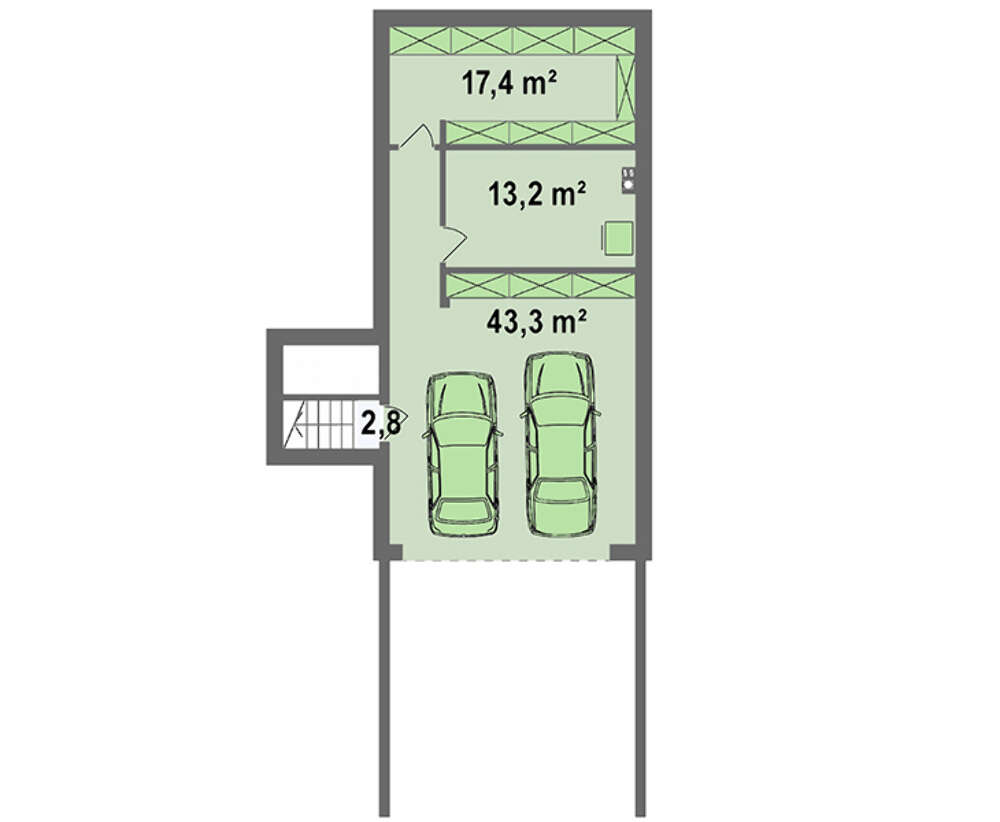 Проект содержит три раздела – Архитектурный, Конструктивный и Инженерный: водоснабжение, отопление, вентиляция, канализация, электроснабжение (приобретается за дополнительную плату) + Пояснительная записка.