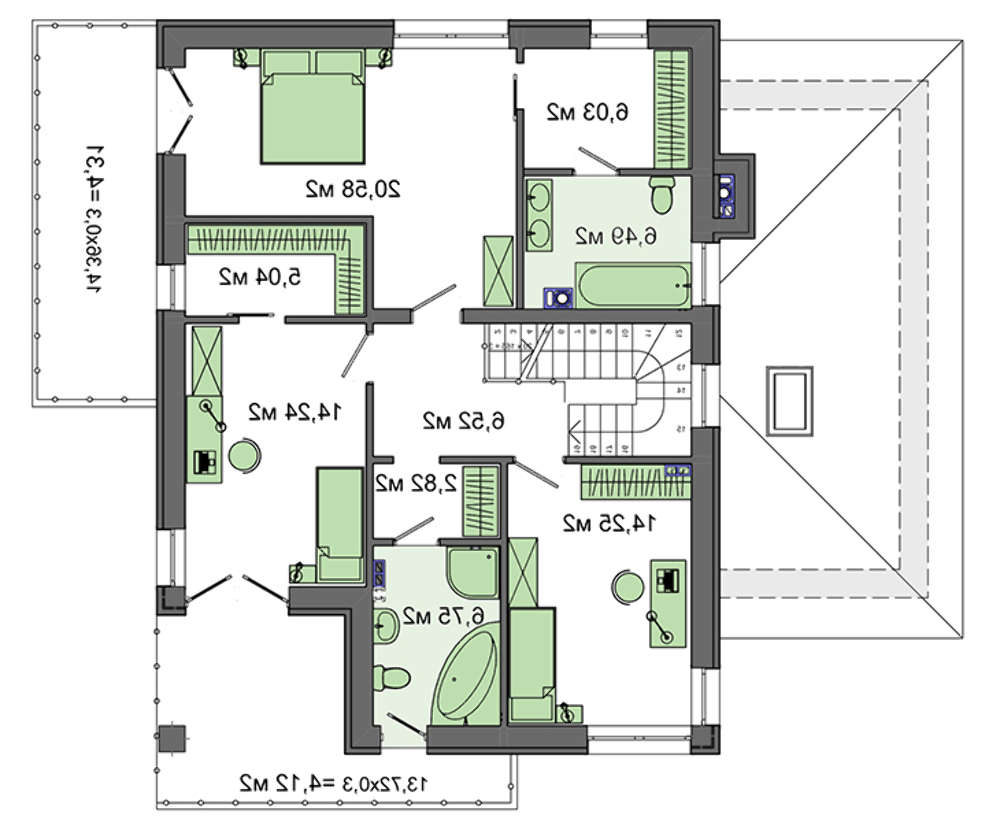 • 4M565 Планировка яркого двухэтажного коттеджа со спальнями повышенной комфортности