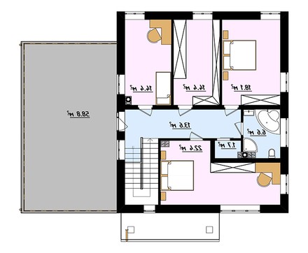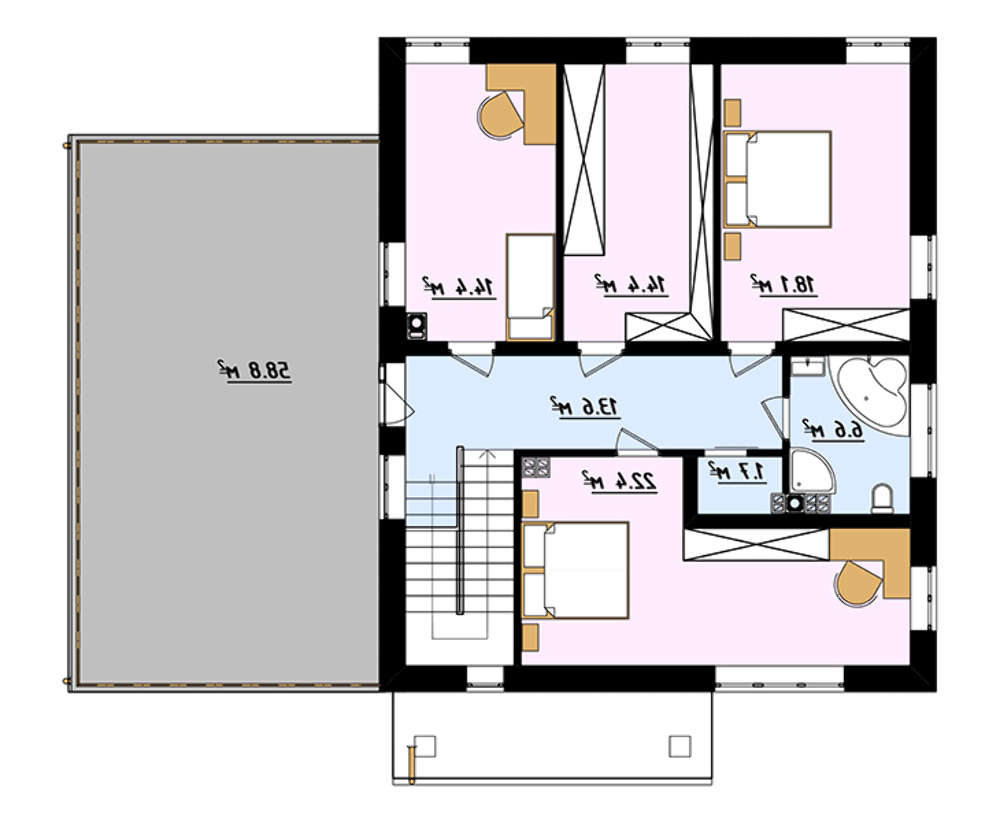 На втором уровне находятся три детских спальни, санпомещение, общий гардероб, бытовая комната и холл. Гордостью коттеджа считается большая открытая веранда. Здесь в летнее время устанавливают лежаки и шезлонги, наслаждаются солнечными ваннами.